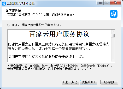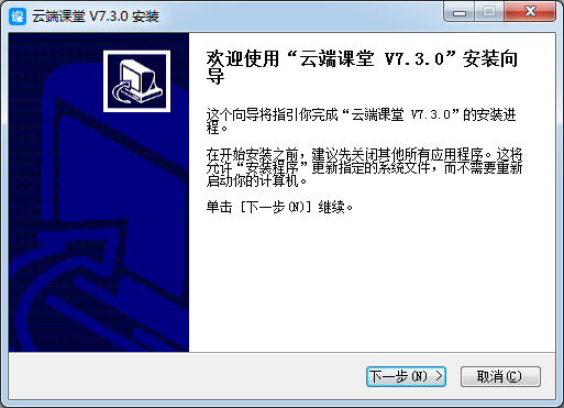 該向?qū)⒁龑?dǎo)您完成“云端課堂V7.3.0”的安裝過程。