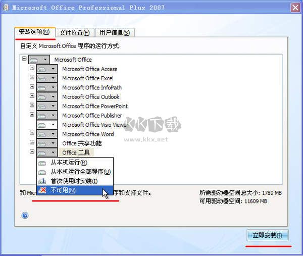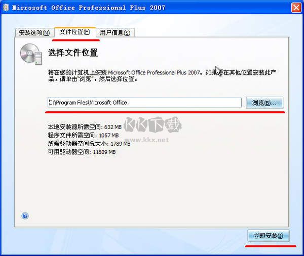 在任一選項卡下,點擊“立即安裝”即可開始 Office 2007 的安裝。
