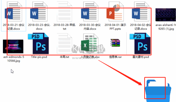 例如,對于*.docx、*.doc、*.xlsx、*.xls、*.pptx、*.ppt、*.wps等辦公文檔格式,可以批量將其移動到工作文檔目錄下,按照文檔類型、表格或PPT進(jìn)行分類存儲。