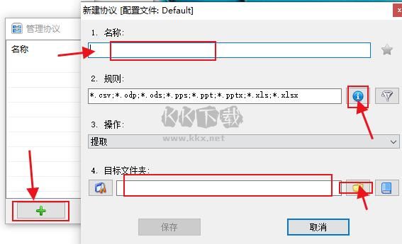 3. 在左下角點(diǎn)擊綠色加號添加協(xié)議,可以隨意命名,并選擇預(yù)設(shè)規(guī)則或自定義規(guī)則(正則表達(dá)式)。設(shè)置完成后保存。