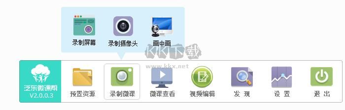 6. 提供多種錄制模式,包括攝像頭錄制、屏幕錄制、電子教鞭、板書查看和微課查看等功能。