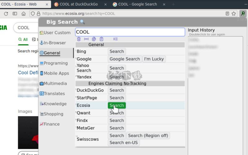 用戶可以將任意搜索引擎或查詢網(wǎng)站整合到一個操作界面中進行操作(支持連續(xù)搜索)。所有支持GET/POST請求的網(wǎng)站都可以添加到插件中。