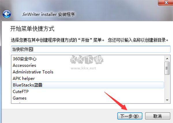 6、選擇創(chuàng)建開始菜單快捷方式,您可自定義名稱或新建目錄;