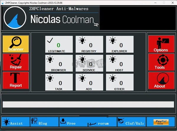 ZHPCleaner的界面設(shè)計(jì)簡(jiǎn)潔直觀,不會(huì)讓用戶(hù)感到困惑。軟件窗口包括三個(gè)主要工具:掃描、修復(fù)和報(bào)告。用戶(hù)首先需要點(diǎn)擊“掃描”開(kāi)始檢查系統(tǒng),之后可通過(guò)“修復(fù)”選項(xiàng)刪除瀏覽器中的不需要的惡意程序。