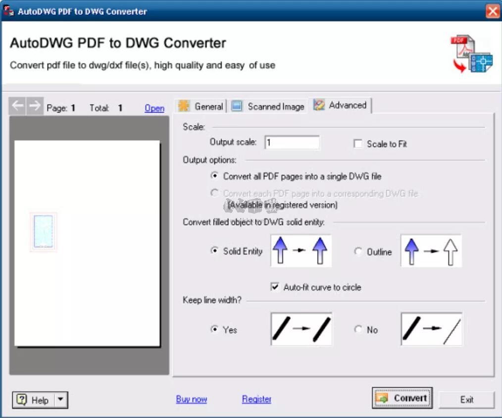 此外,可以將填充的對(duì)象轉(zhuǎn)換為DWG實(shí)體或輪廓,并使PDFIn PDF to DWG Converter保持線寬。