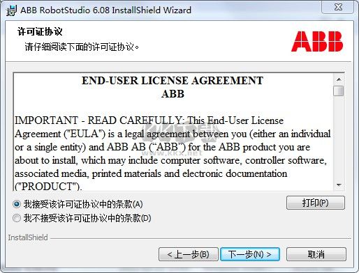 4、確認(rèn)默認(rèn)安裝路徑【C:\Program Files (x86)\ABB Industrial IT\Robotics IT\RobotStudio 6.08\】。