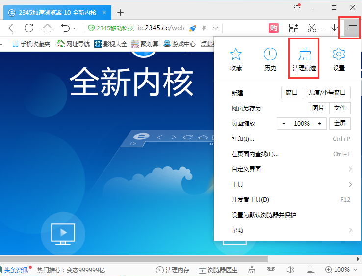 如何清除2345王牌瀏覽器的瀏覽記錄?
