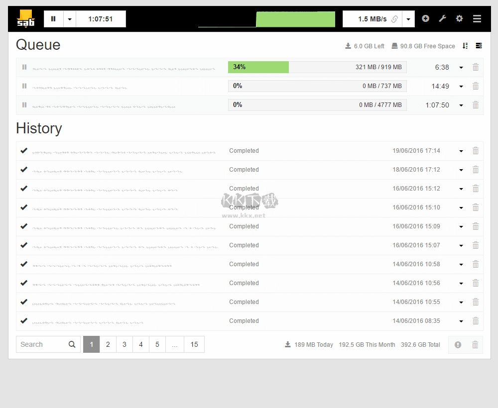 2、SABnzbd自動完成下載、驗證、修復、解包以及清理不需要的文件,只需將NZB文件丟入程序,稍等片刻,您將獲得一個完整并可直接使用的下載文件。您還可以根據(jù)需要添加后處理腳本。