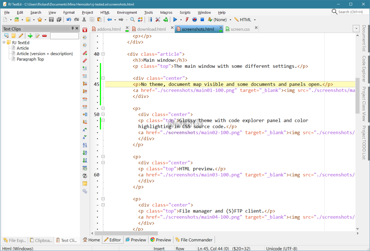 以下是RJ TextEd中一些實(shí)用的小功能: