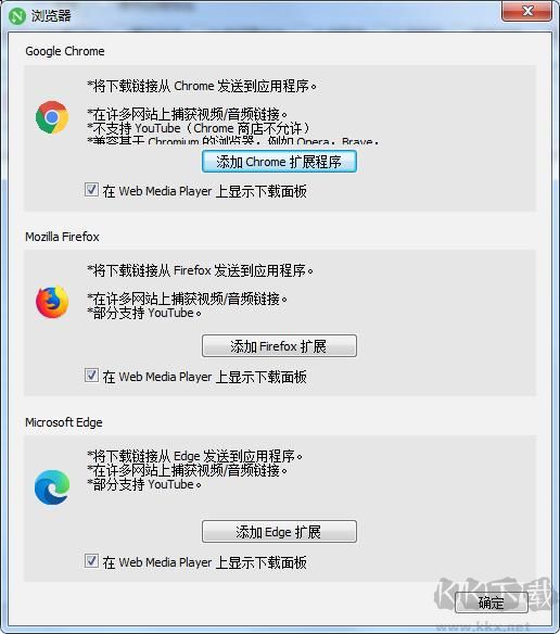 8、內(nèi)建瀏覽器擴展,可以發(fā)送下載鏈接,幫助用戶下載網(wǎng)站上的視頻和音頻。