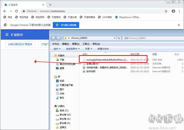 4、將文件“mciiogijehkdemklbdcbfkefimifhecn_0.11.0_chrome.zzzmh.cn.crx”拖入瀏覽器中