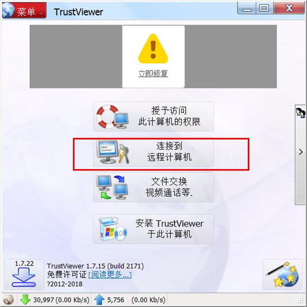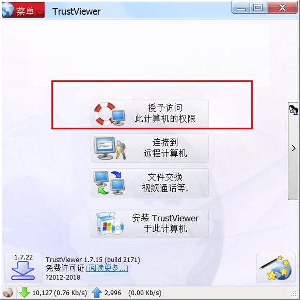 1、打開TrustViewer后,首先點(diǎn)擊“授予訪問此計(jì)算機(jī)的權(quán)限”選項(xiàng)。