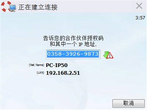 2、此時(shí),您會看到一個(gè)12位的連接ID以及計(jì)算機(jī)的IP地址,如下所示: