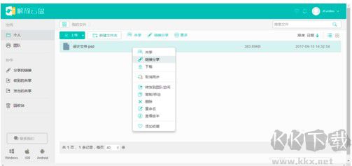 2、右擊文件,選擇共享或鏈接分享。通過共享功能,您可以與同一企業(yè)內(nèi)的用戶快速分享文件;通過鏈接分享,可以生成文件鏈接,并設(shè)置不同的權(quán)限,輕松分享給外部人員,如客戶或合作方。