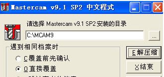 7. 安裝完成后,進(jìn)入破解步驟,將“Crack”文件夾中的內(nèi)容復(fù)制到Mastercam9.1的安裝目錄進(jìn)行破解。