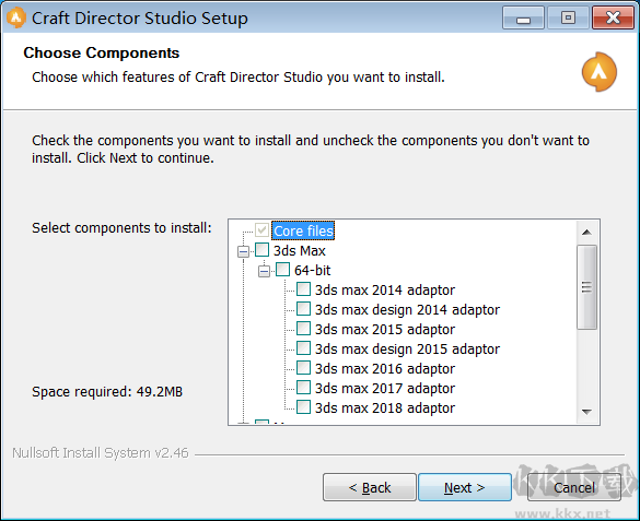 2、選擇你需要安裝的組件,根據(jù)需求勾選,點(diǎn)擊Next繼續(xù)。