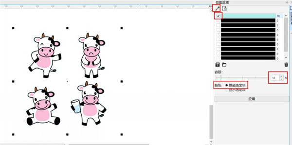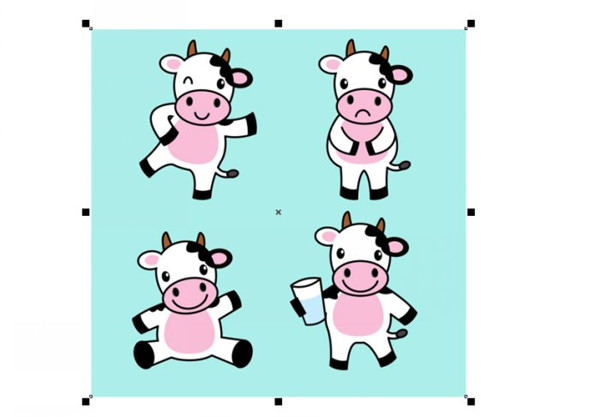 2、選中導(dǎo)入的位圖。這次我們要摳掉藍色背景,保留圖片中的四只小牛。