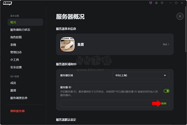 2、啟用后,服務(wù)器ID將顯示在界面下方,點(diǎn)擊旁邊的復(fù)制按鈕即可將ID復(fù)制并分享給朋友。