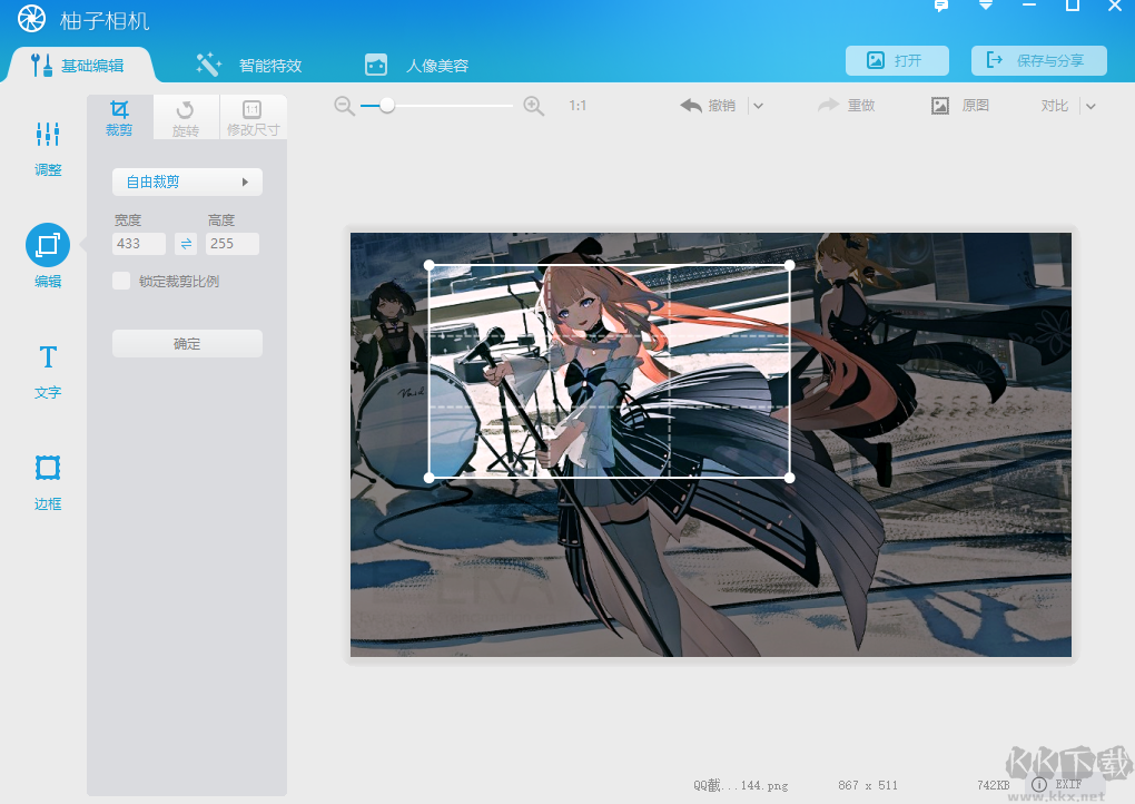 一、基礎編輯為照片和人像提供基礎修飾功能,包括一鍵美化、圖片剪切、文字和邊框添加等。