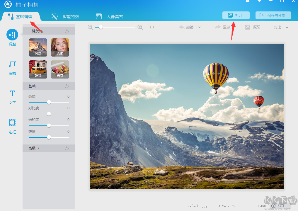 1、啟動柚子相機后,點擊基礎編輯中的“打開”